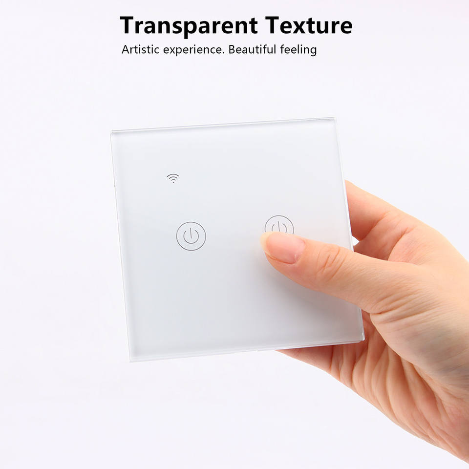 SLS EU pour Tuya Smart WiFi Touch Switch 2 Gang Panneau de verre Télécommande Fil en direct unique Compatible Google Alexa 10A 240V Fabriqué