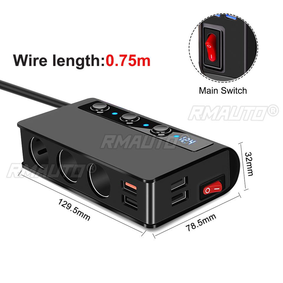 Chargeur de voiture SLW002 180W 4 ports USB QC3.0 à charge rapide, adaptateur de prise 12V/24V