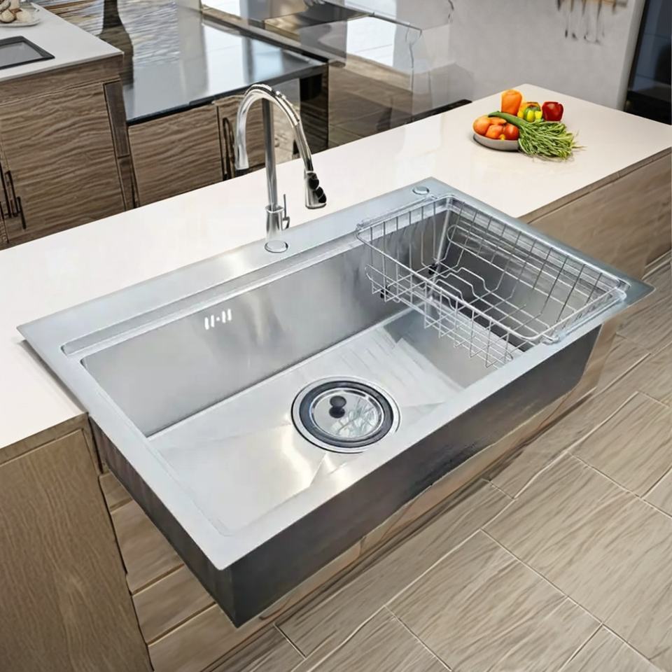 SM 8050 Évier de cuisine à bol unique fait à la main en acier inoxydable 304 avec design spécial Prix d'usine du robinet du Vietnam non inclus
