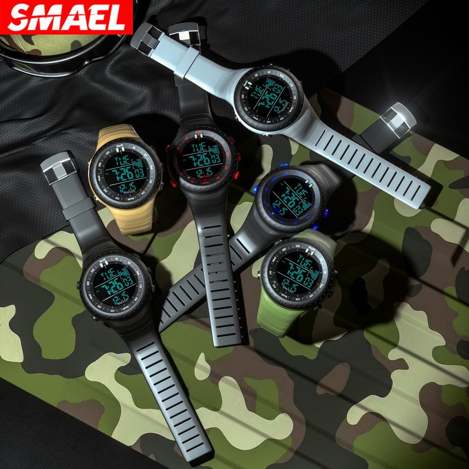 Montre-bracelet de luxe pour homme SMAEL 1237, sport de plein air, résistante à l'eau 50 bars, chronographe, affichage LED, alarme, chronomètre, plastique
