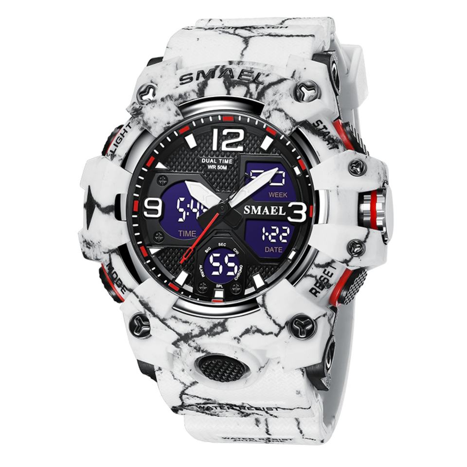 SMAEL Sport Quartz Watch 8008MC Camouflage Color Analog-Digital Display Stop Watch Alarm 5BAR Water Resistant