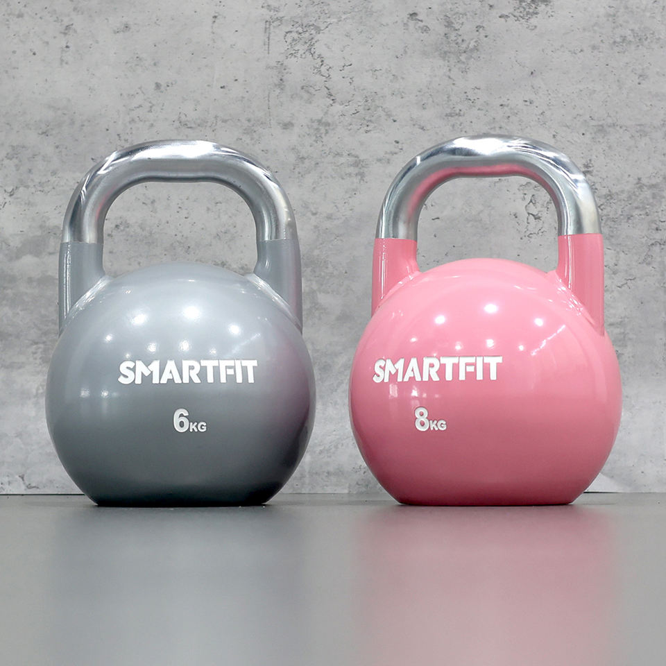 Kettlebell de compétition colorée SMARTFIT de 8 à 32 kg, logo personnalisé, poids libre en acier, ensemble