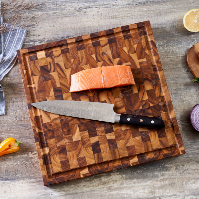 Planche à découper en teck SMARTWOOD - Grain de bois - Carrée et rectangulaire - Planche à découper écologique en bois brun