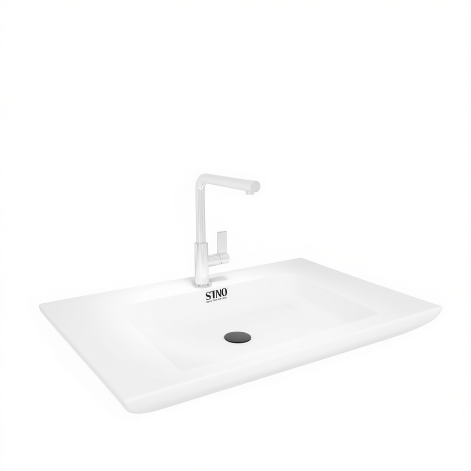 Lavabo encastré SMC pour salle de bain, 31,5x18,1x5,1 pouces, blanc, rectangulaire, à encastrer, à trou unique, design minimaliste