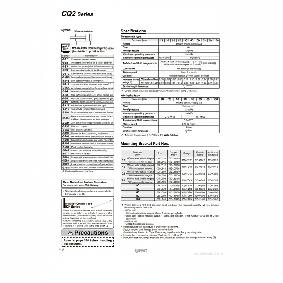 Cylindre compact SMC CDQ2G63-125DCMZ pièces pneumatiques