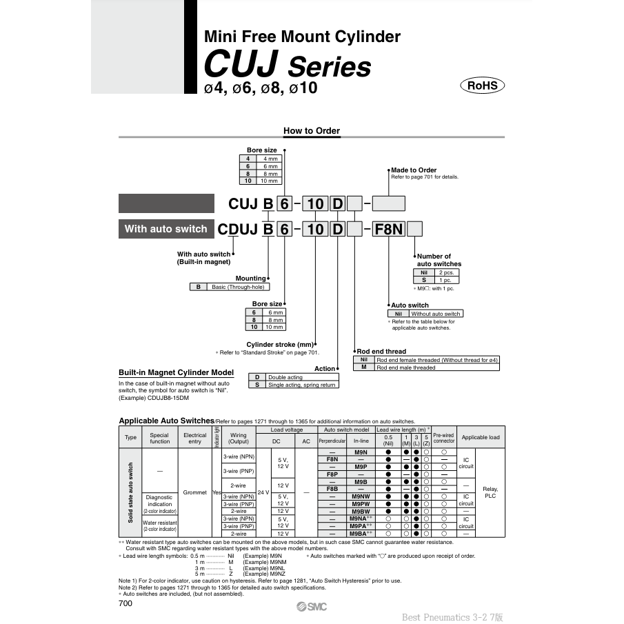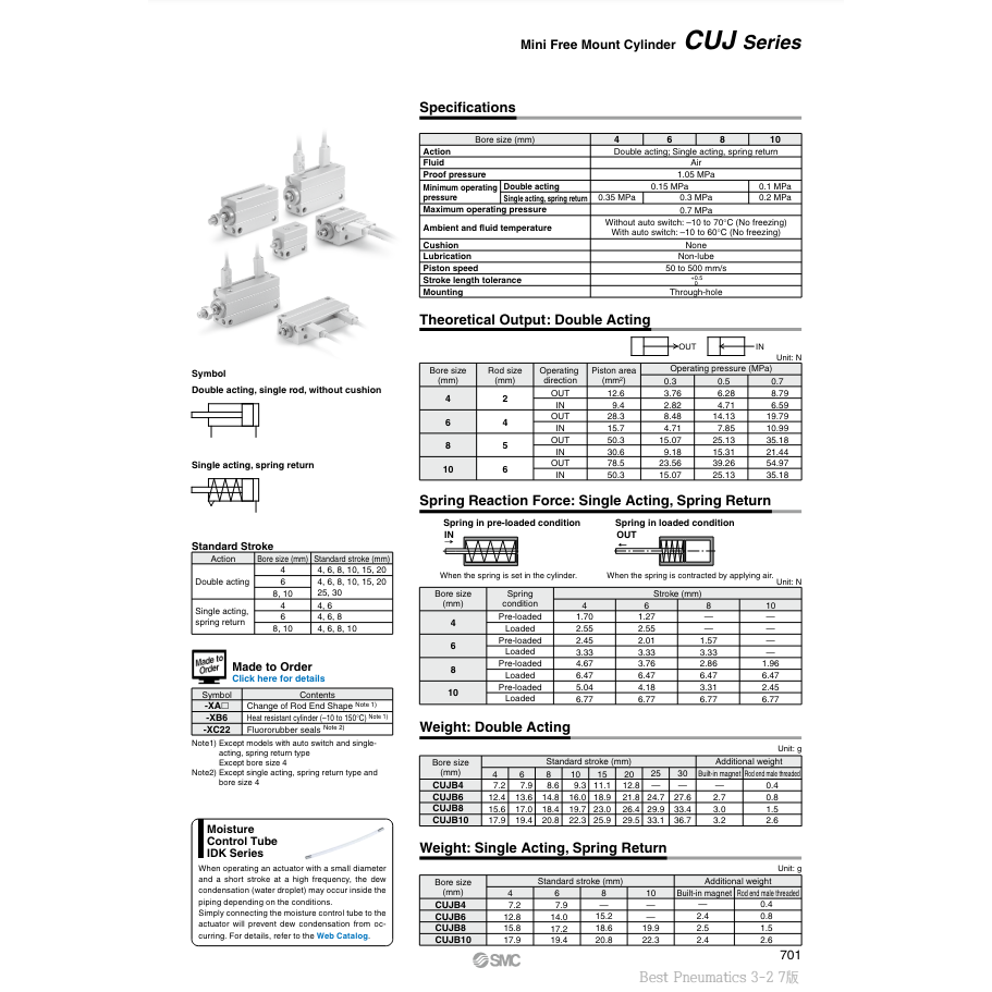SMC Mini cylindre à montage libre CDUJB10-6DM pièces pneumatiques