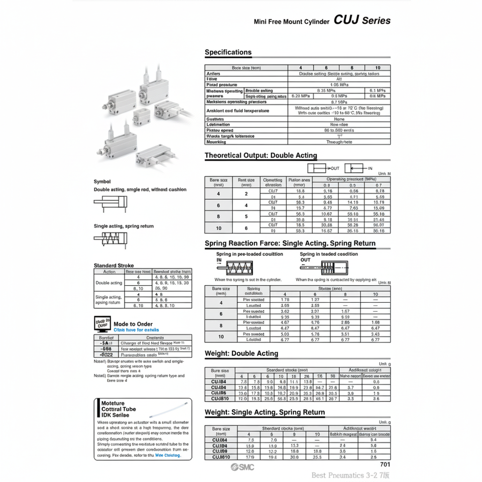 SMC Mini Free Mount Cylinder CUJB10-15D Pneumatic Parts
