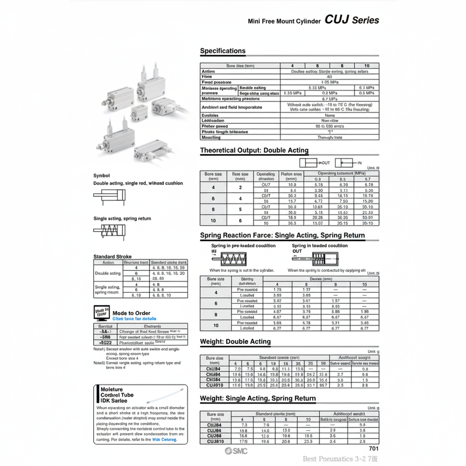 SMC Mini cylindre à montage libre CUJB4-6DM pièces pneumatiques