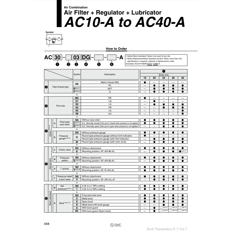 SMC Pneumatics Air Combinaison AC40-04DM-V-A Pièces Pneumatiques