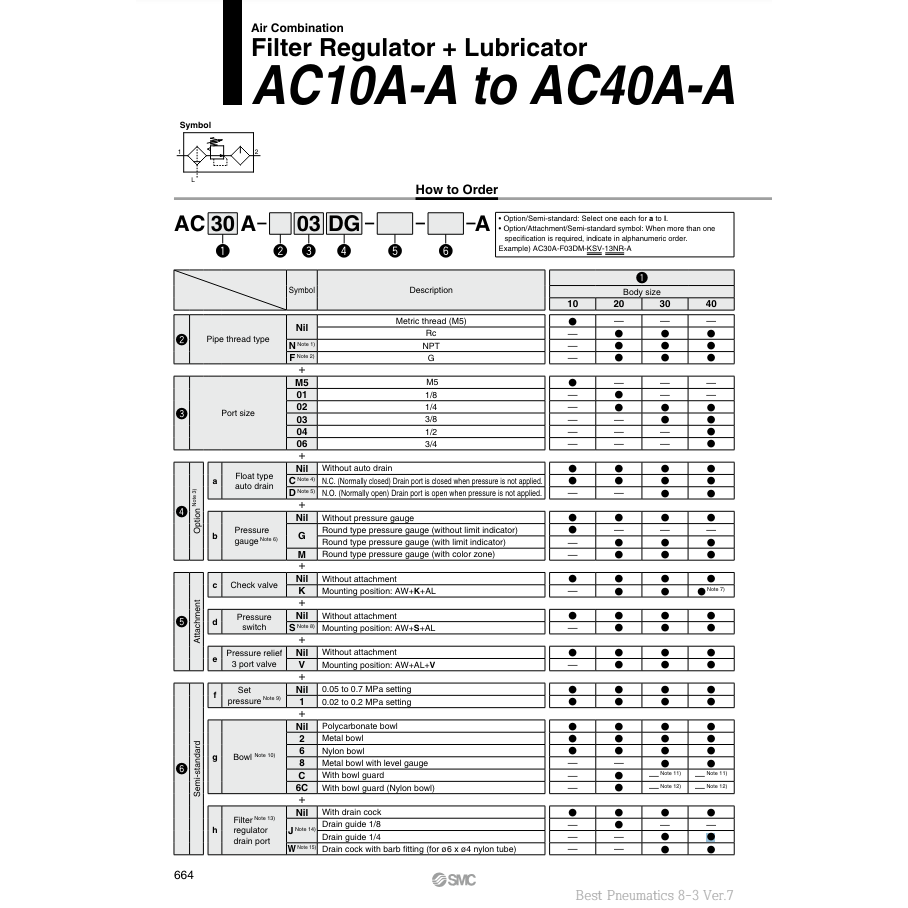 Modèle de pièce de combinaison d'air pneumatique SMC AC40A-03DG-A