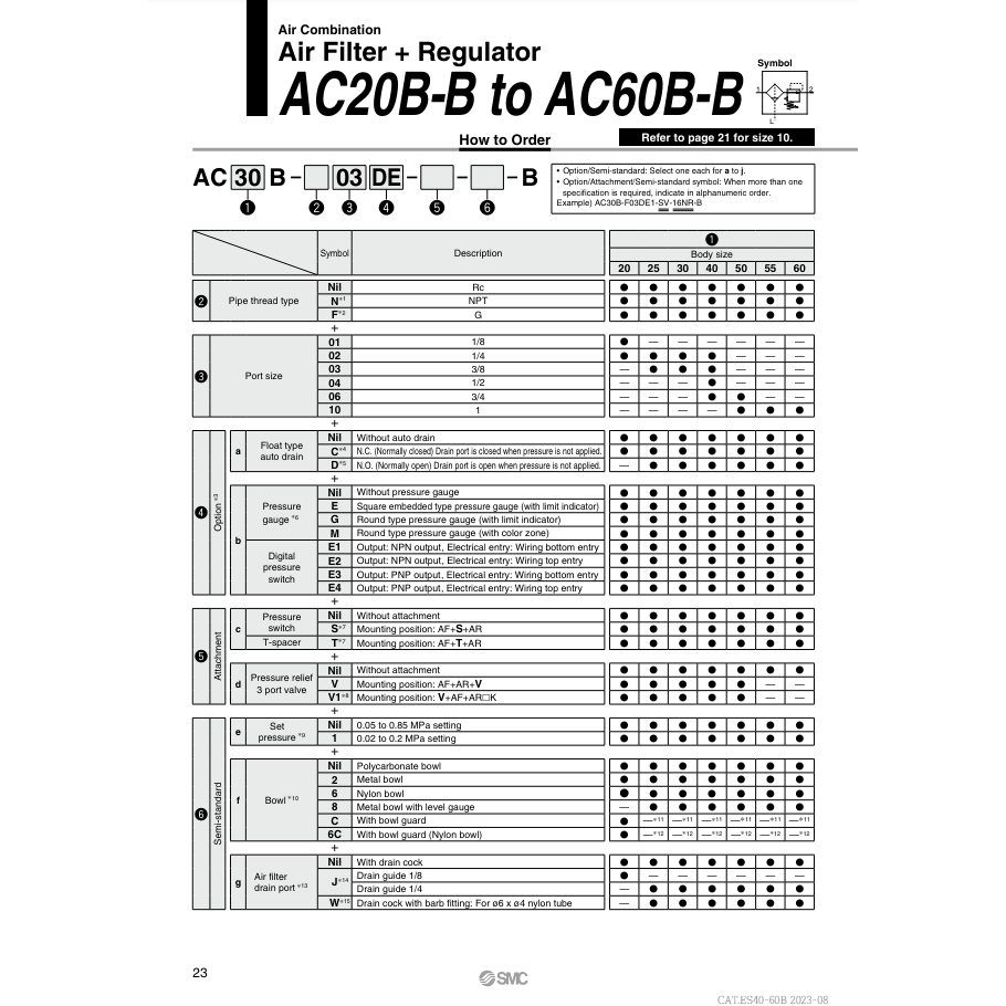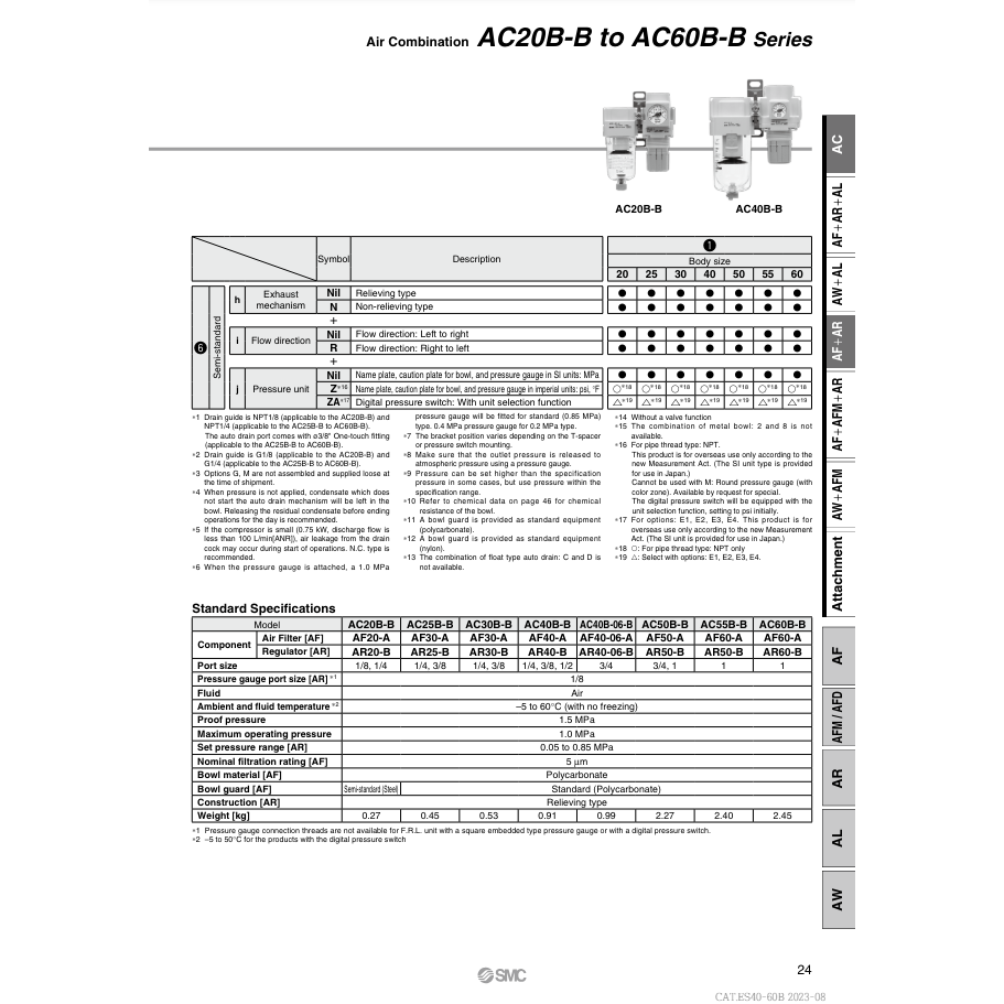 AC30B-02E-V1-B de combinaison de filtre à air SMC Pneumatics