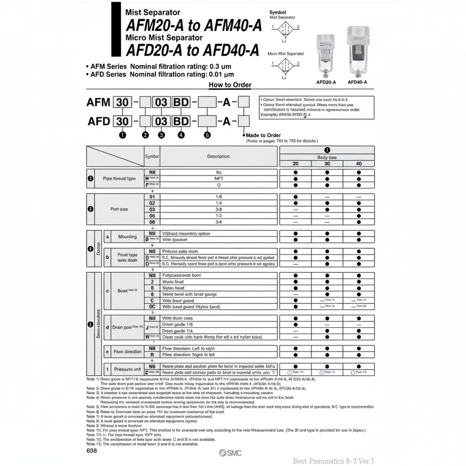 SMC Pneumatics Air Filter Mist Separator Model AFM40-N04D-Z-A