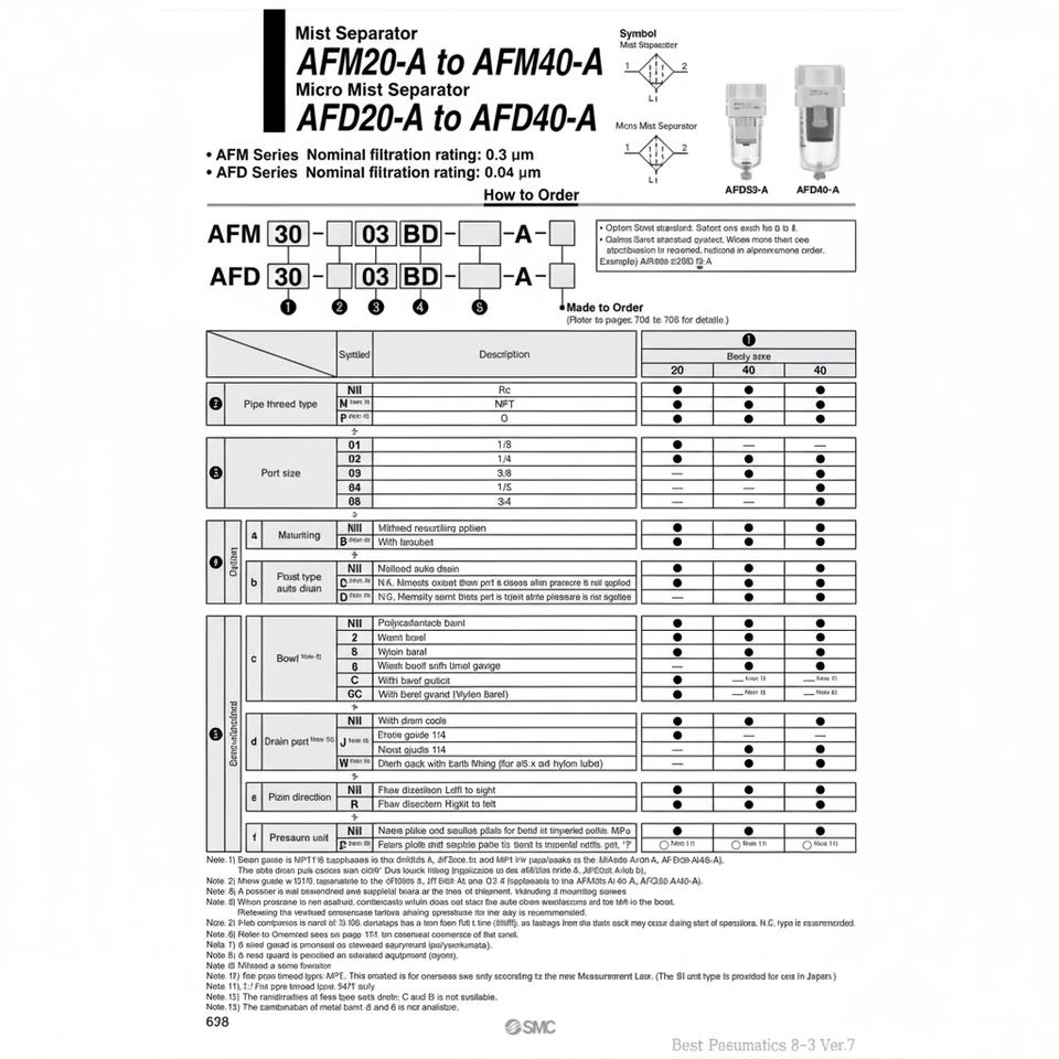Modèle AFM40-F04D-A de séparateur de brouillard de filtre à air pneumatique SMC