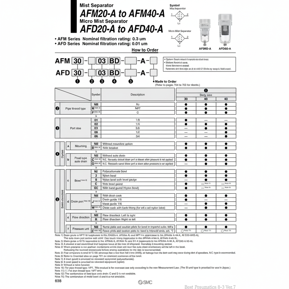 Modèle de séparateur de brouillard de filtre à air SMC AFM40-F04BD-A