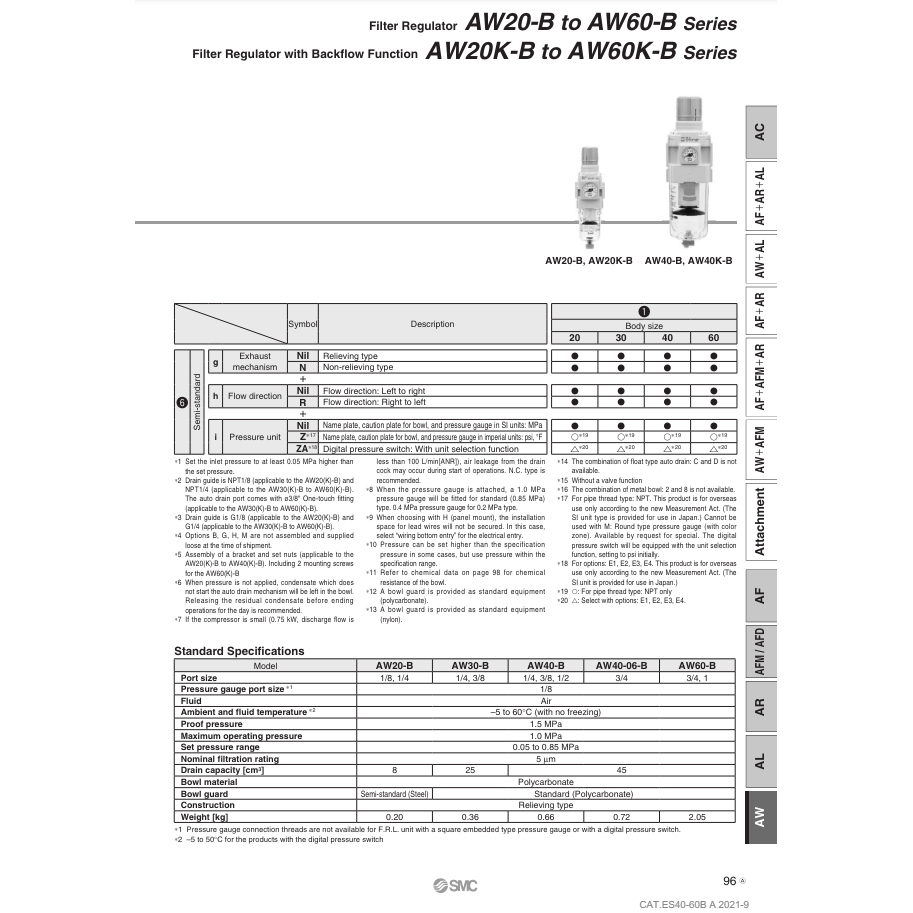 Modèle AW30-03BE1-R-B de régulateur de filtre à air SMC Pneumatics