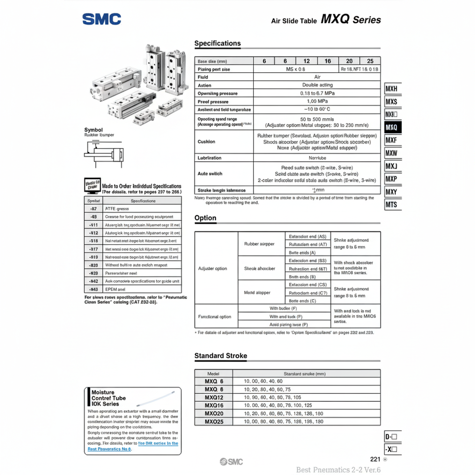 Table coulissante pneumatique SMC MXQ20-40B