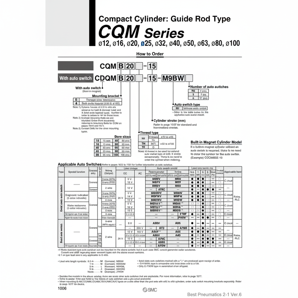 SMC Pneumatics Cylindre Compact CDQMB25-30 Pièce Pneumatique de Haute Qualité