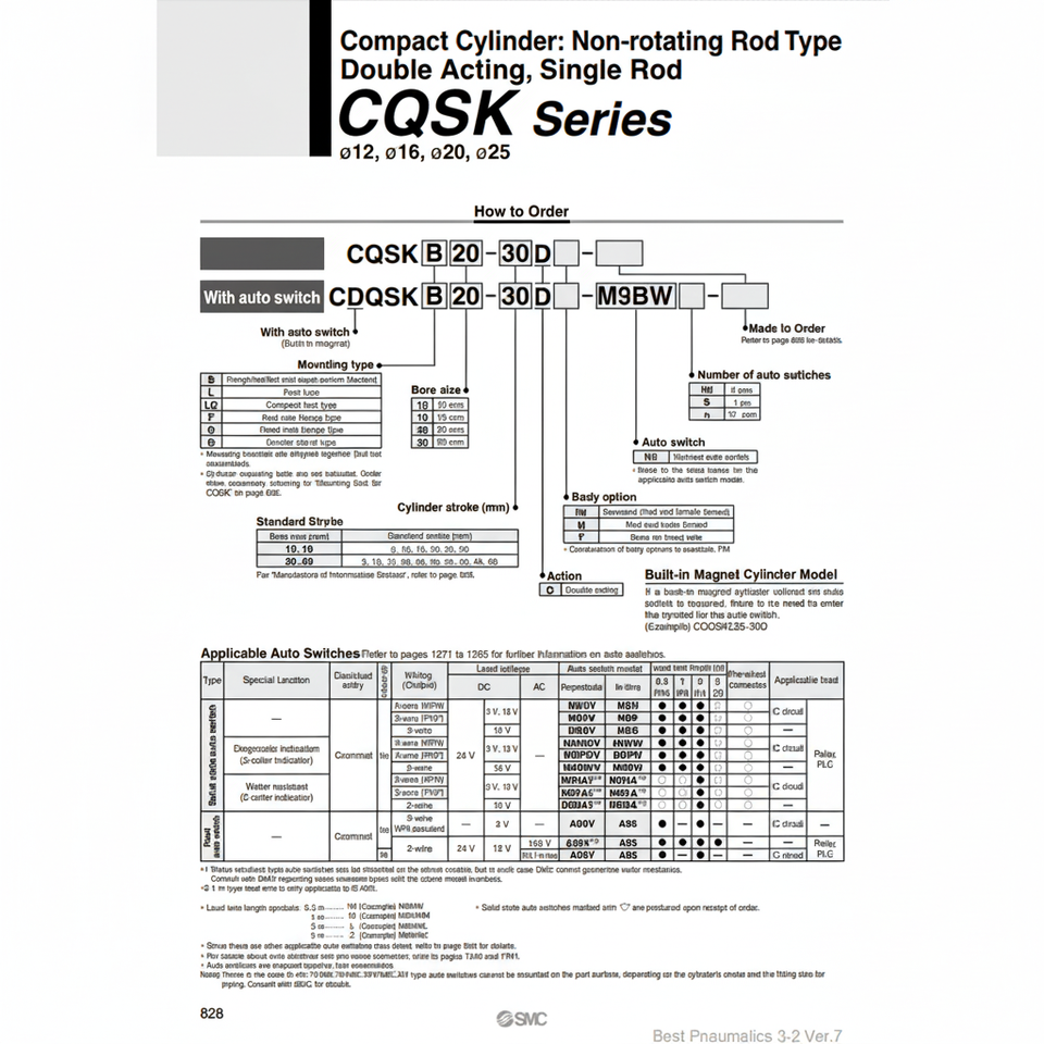 SMC Pneumatics Cylindre Compact CDQSKB25-33DM Pièces Pneumatiques De Haute Qualité