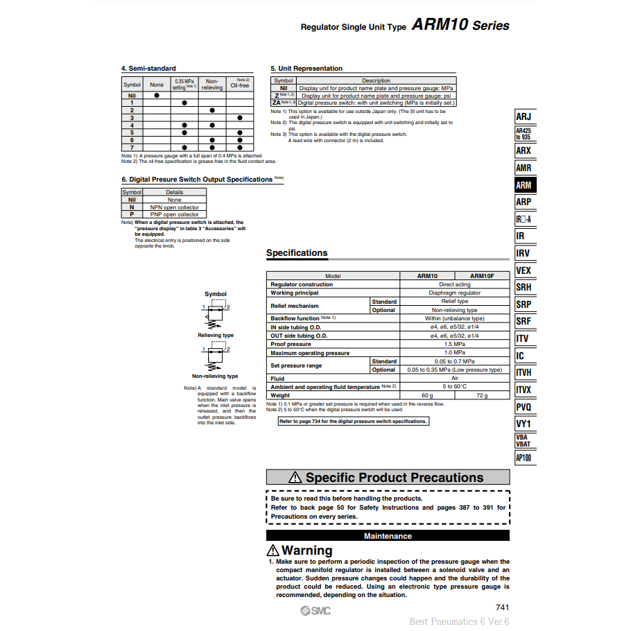 Régulateur de collecteur compact SMC Pneumatics ARM10F2-18BG régulateur de pression à haut rendement