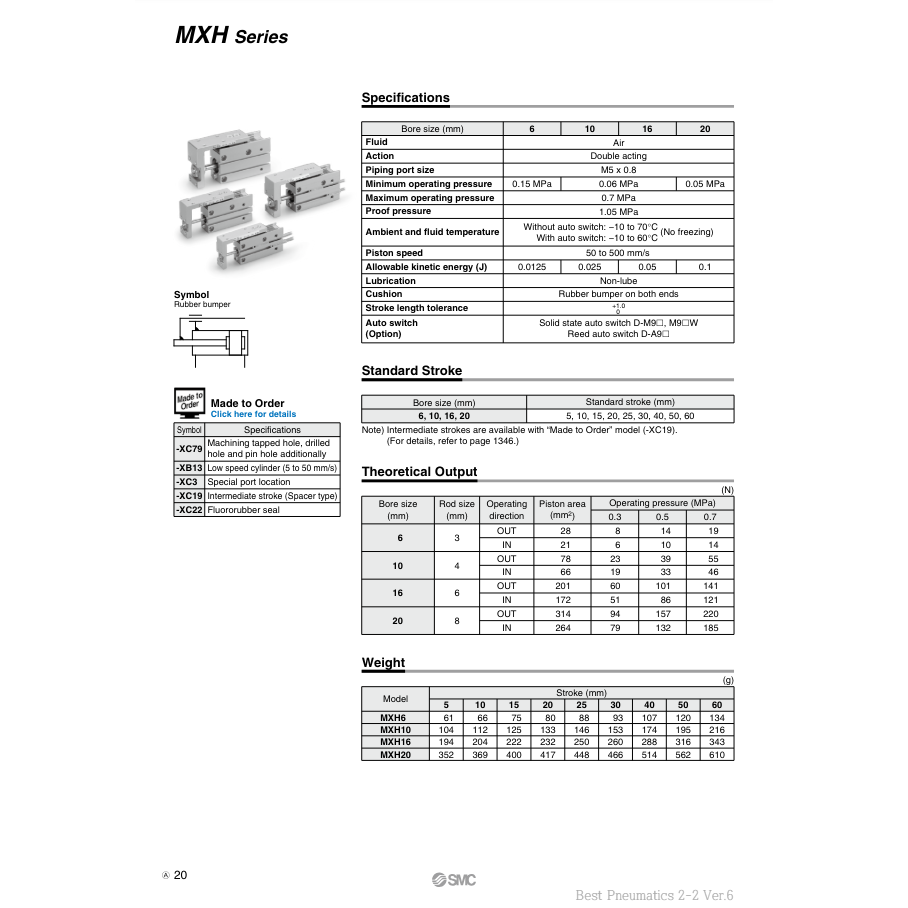 Glissière compacte SMC Pneumatics MXH16-25Z pièce pneumatique de haute qualité