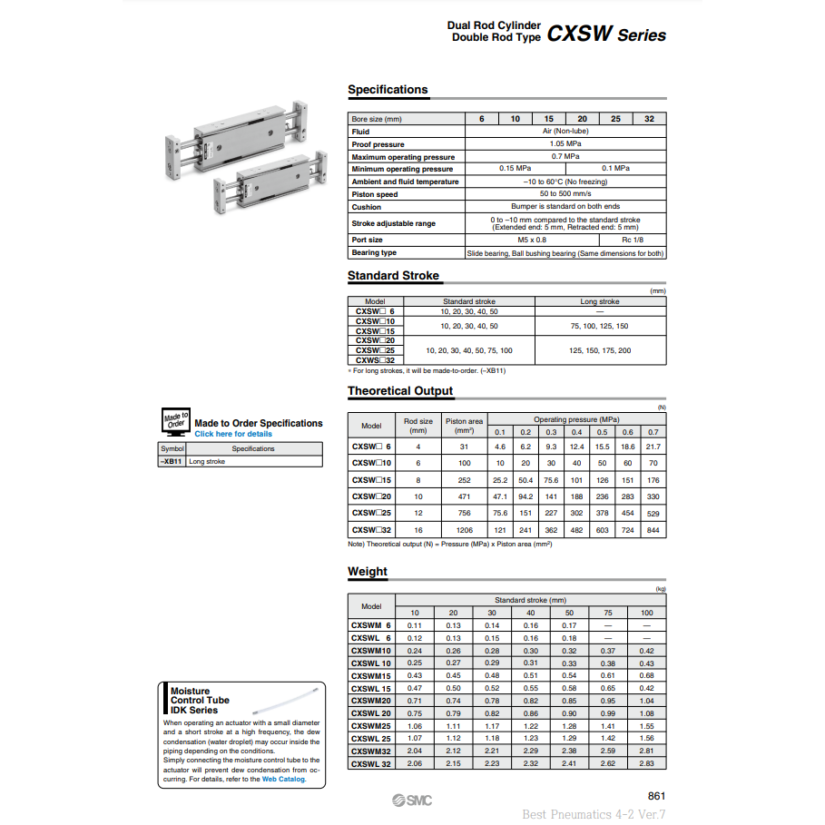 SMC Pneumatics Cylindre à double tige CXSWM10-10 Pièces pneumatiques