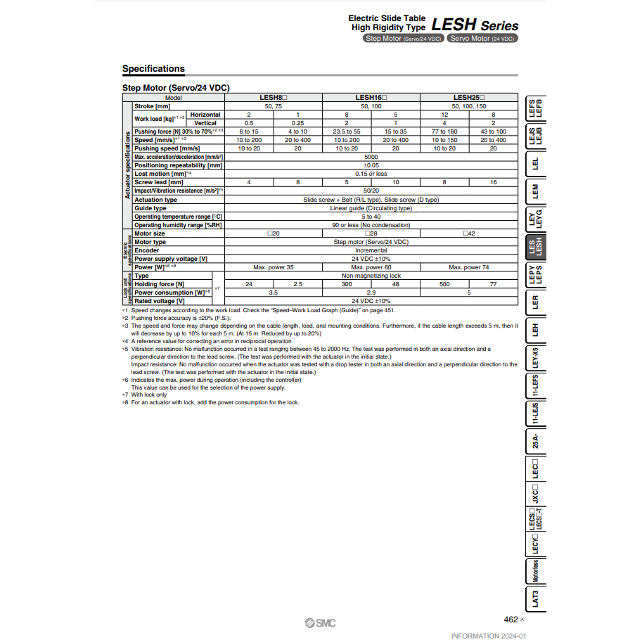 Table coulissante électrique pneumatique SMC LESH25RJ-50B-R5AN1D