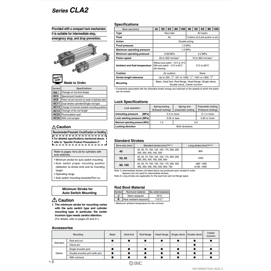 SMC Pneumatics Cylindre de verrouillage fin CDLA2B50-650-D