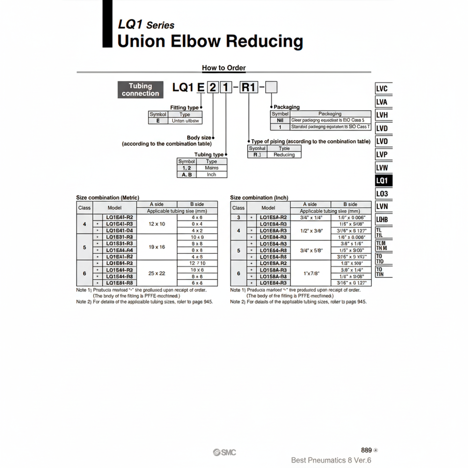 Raccords en fluoropolymère pneumatique SMC LQ1T3A-R7 pièces pneumatiques haute performance