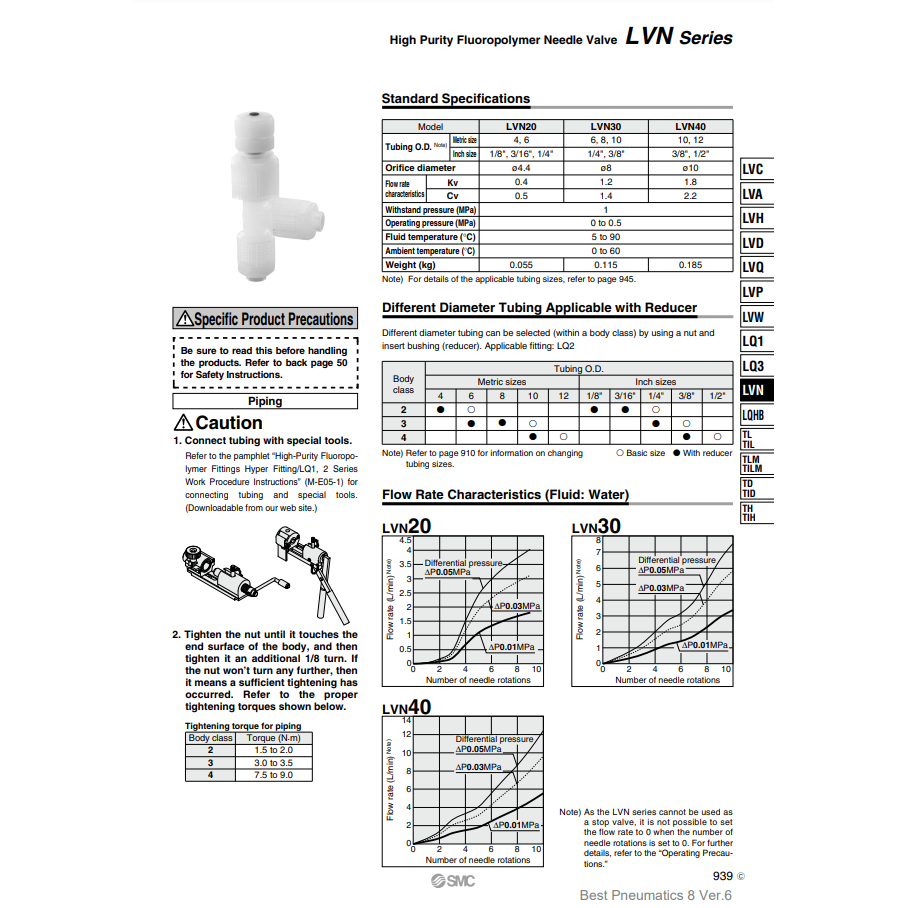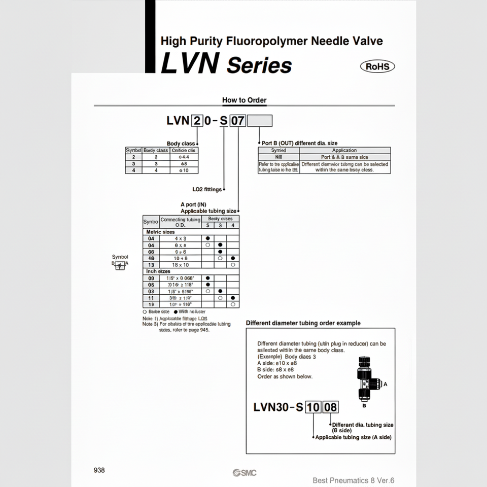 LVN30-S08 de modèle de vanne à aiguille en fluoropolymère pneumatique SMC