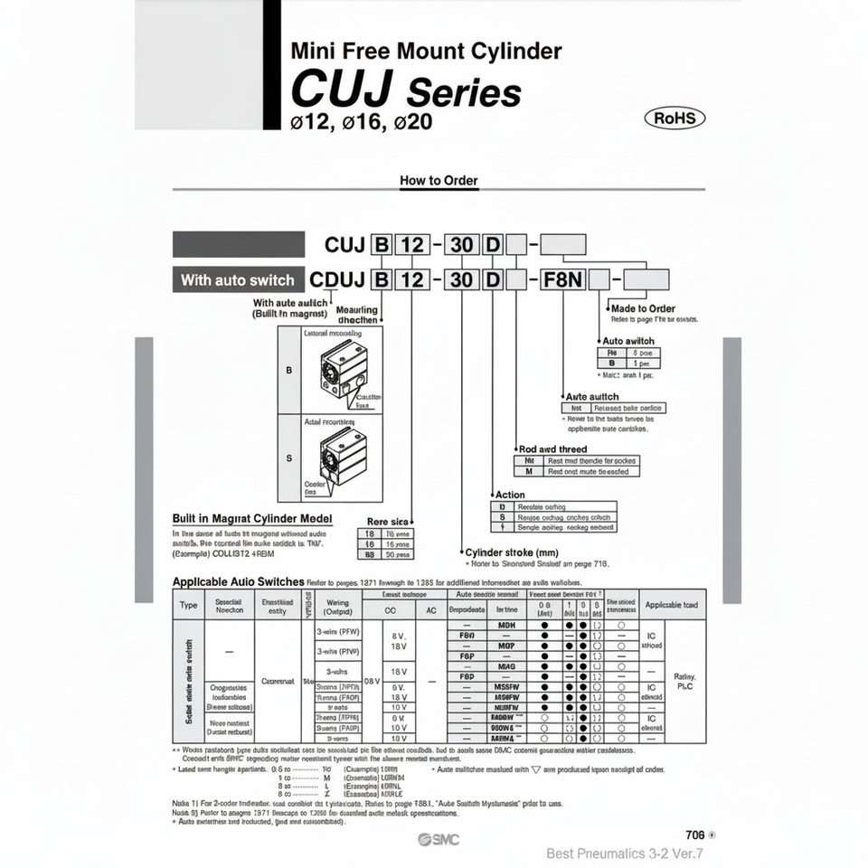 Pièces pneumatiques de CUJS12-15D de cylindre de bâti libre de SMC Pneumatics