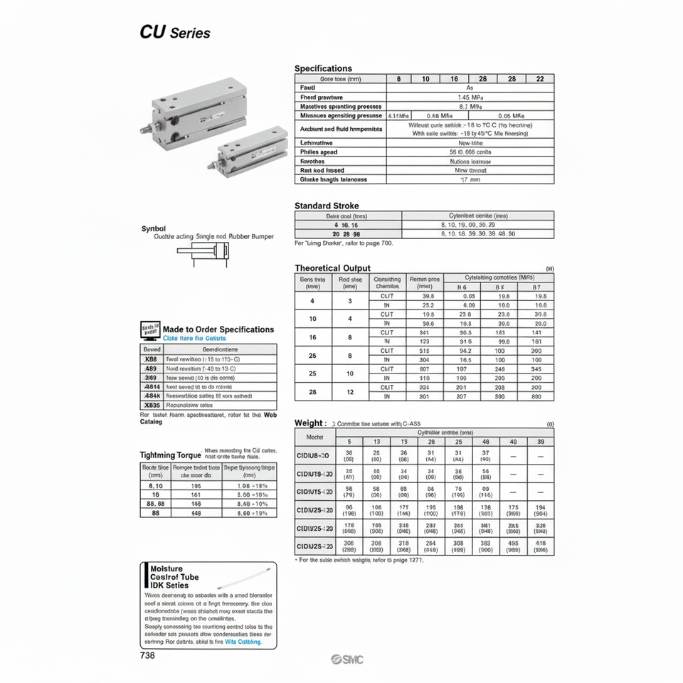Pièces pneumatiques de CU10-30D de modèle de cylindre de bâti libre de SMC Pneumatics