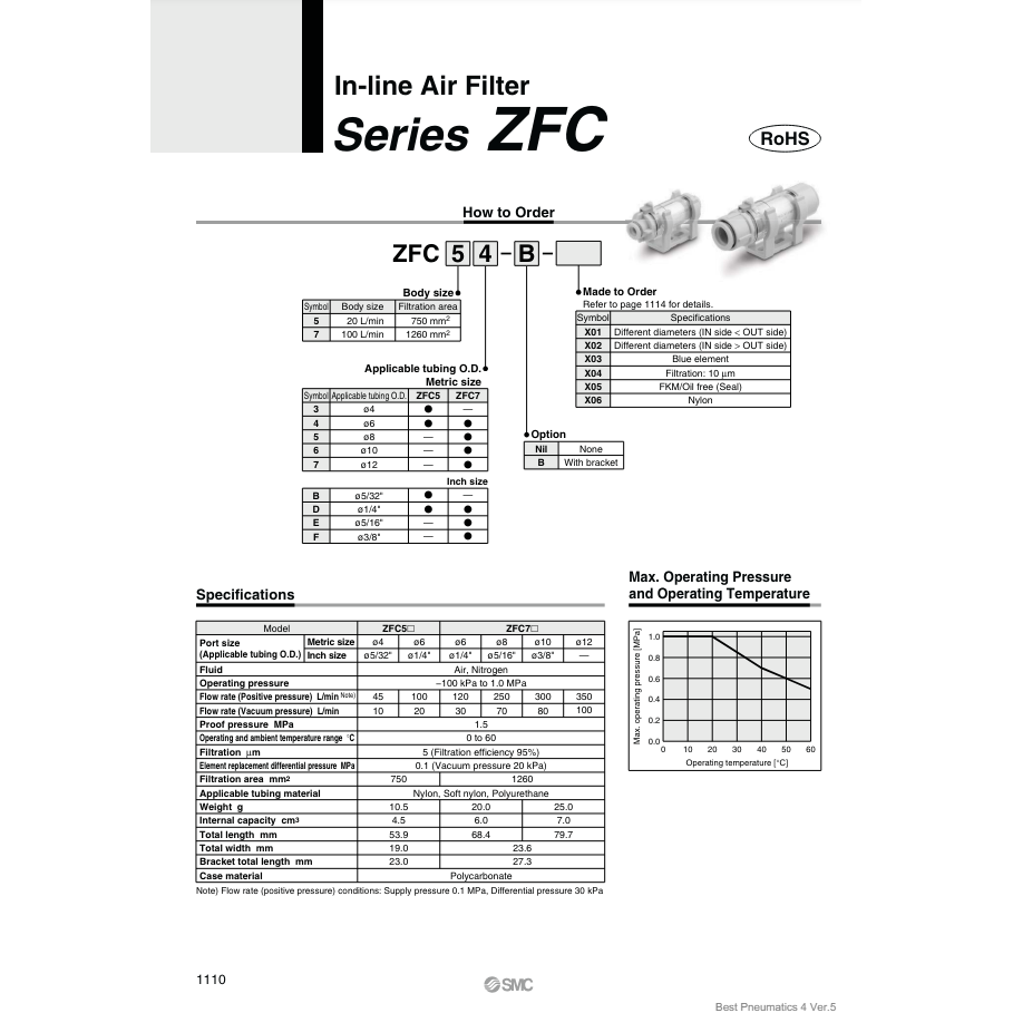 ZFC53-B de filtre à air en ligne SMC Pneumatics