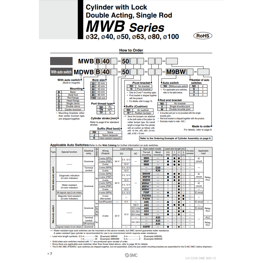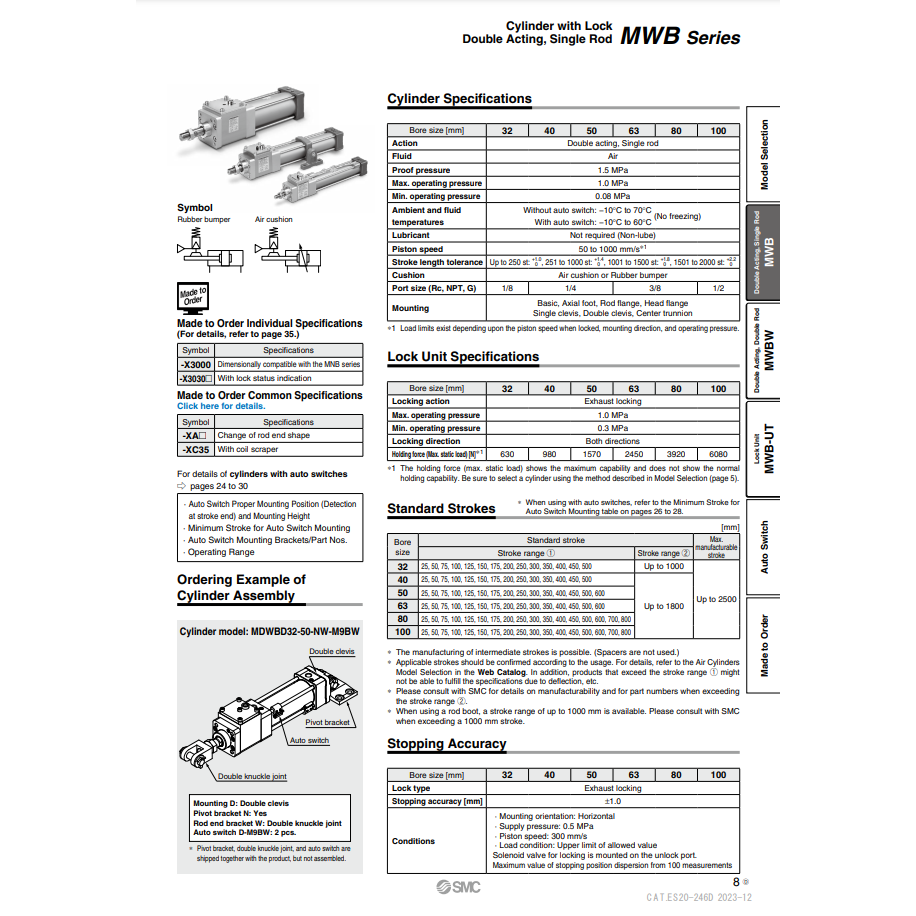 MWBF80-100 de modèle de cylindre de serrure pneumatique SMC