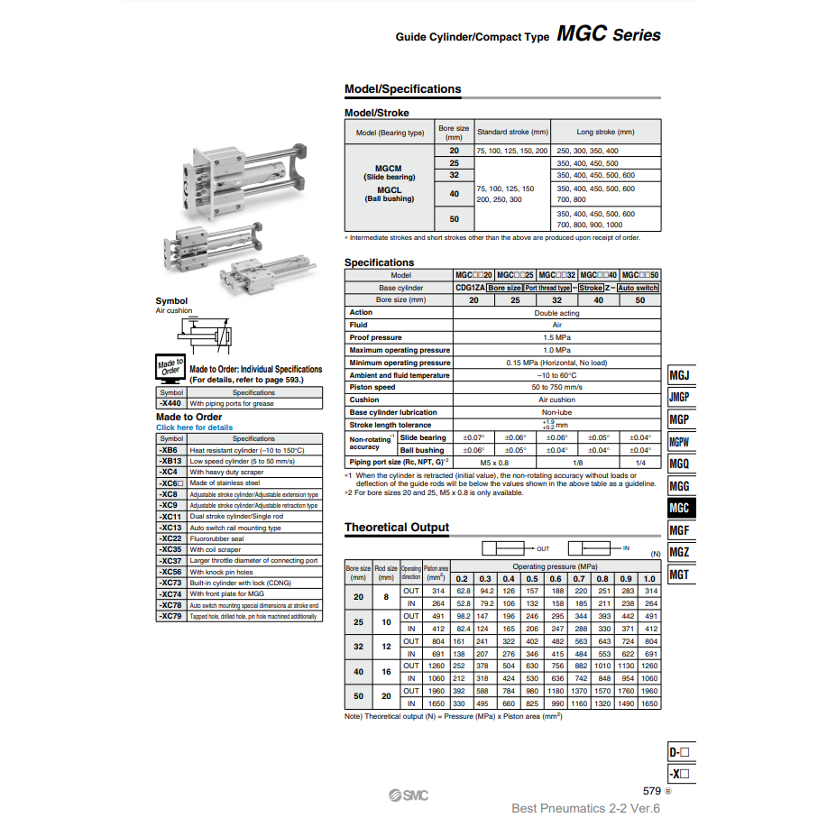Cylindre de guidage MGCLB40-200-R SMC Pneumatics