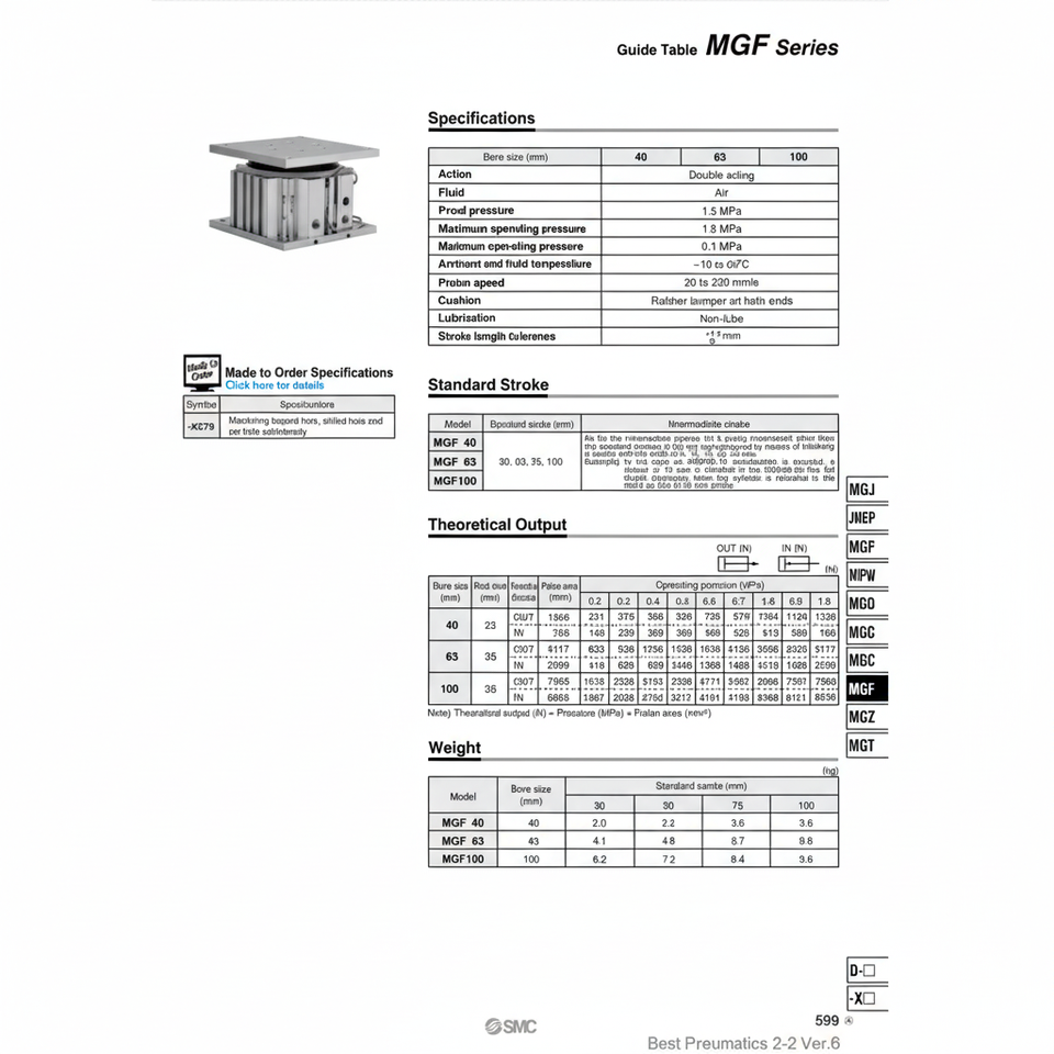 Table de guidage MGF40-30 pneumatique SMC Produit de cylindre de haute qualité