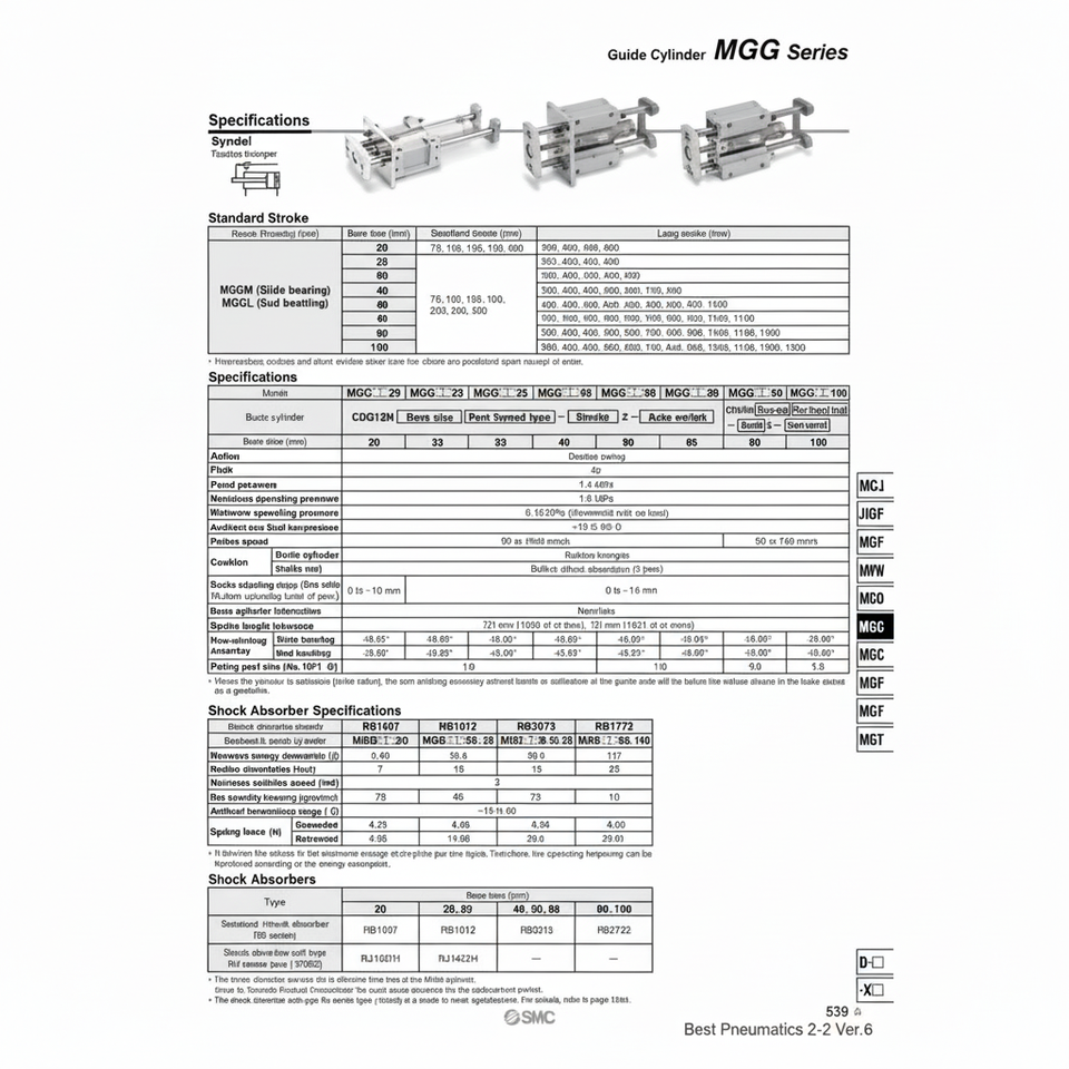 Cylindre de guidage MGGMB25-250-HL SMC Pneumatics