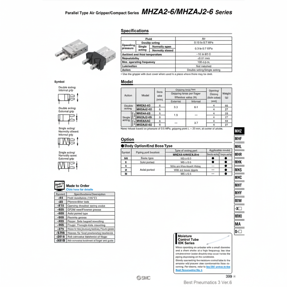 Pièces pneumatiques de pince pneumatique de style parallèle de MHZA2-6S3 pneumatique SMC