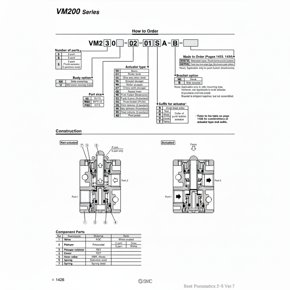 Modèle de soupape de commande mécanique pneumatique SMC VM220-02-05A