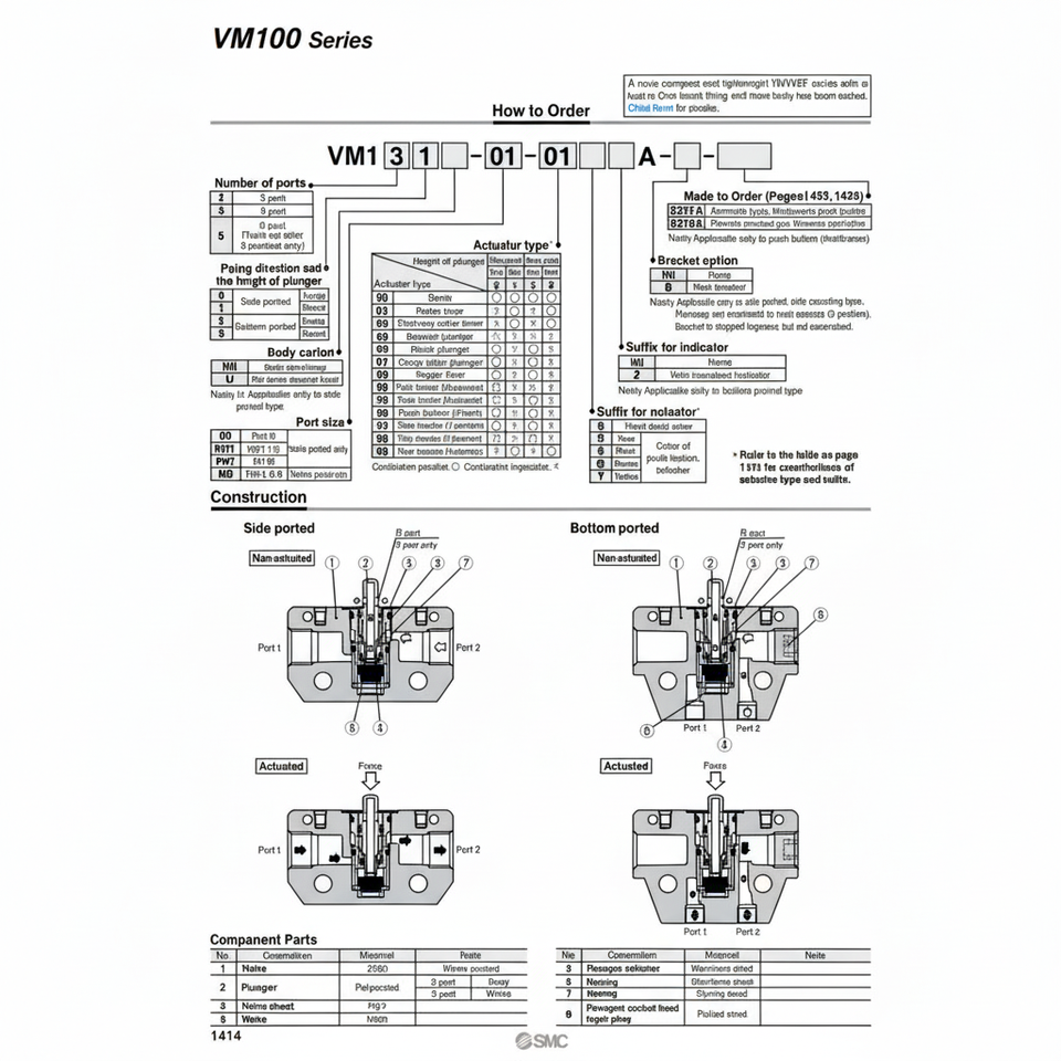 Modèle de soupape de commande mécanique pneumatique SMC VM130-01-00A