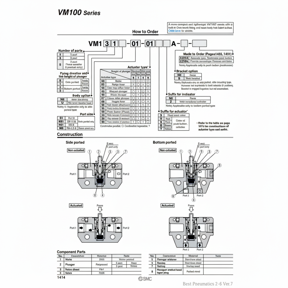 Modèle de soupape de commande mécanique pneumatique SMC VM121-01-01A