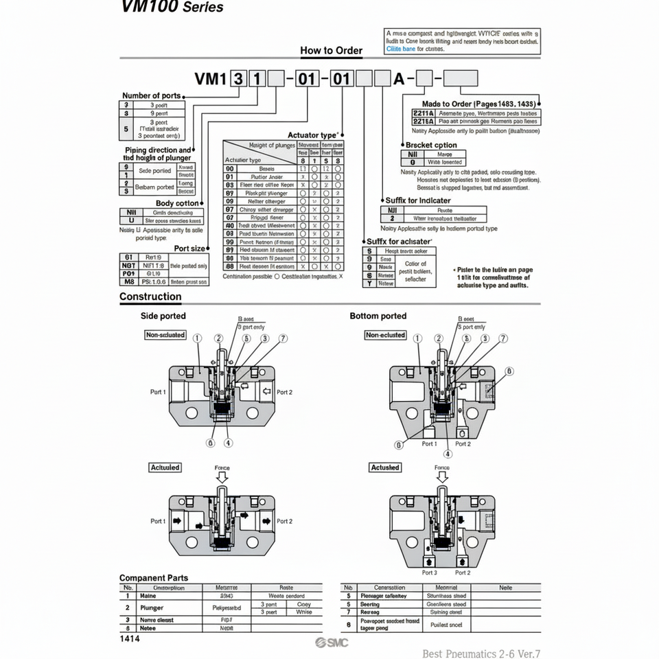 Modèle de soupape de commande mécanique pneumatique SMC VM151-01-35RA