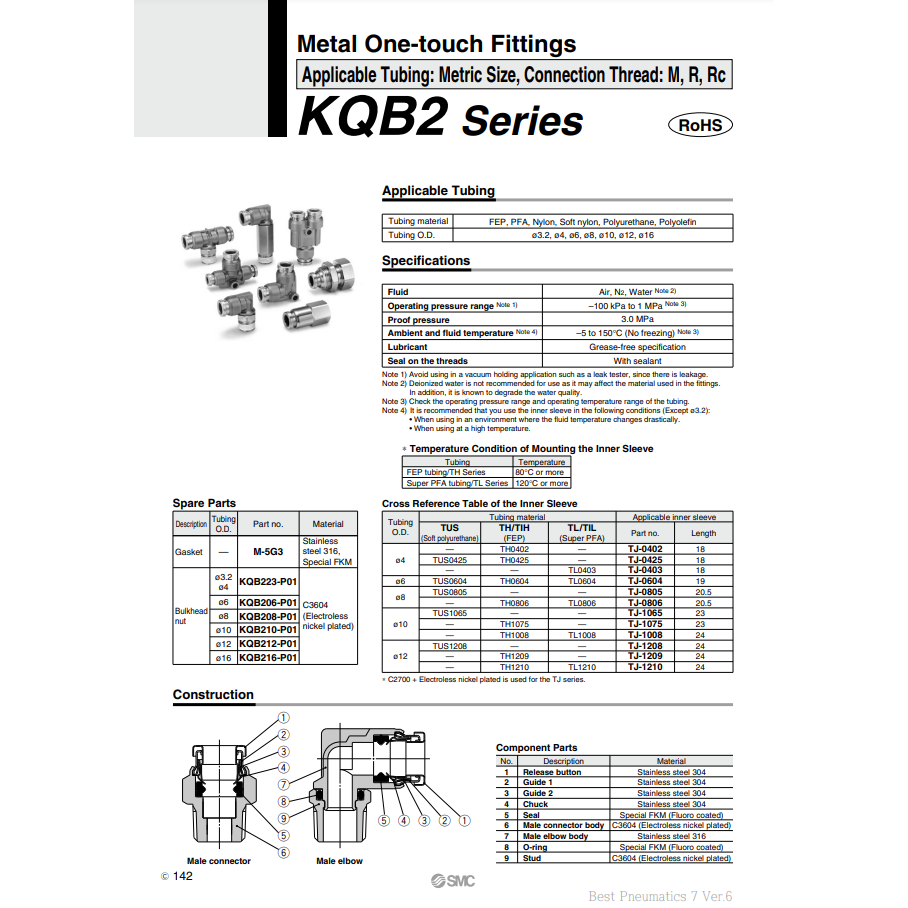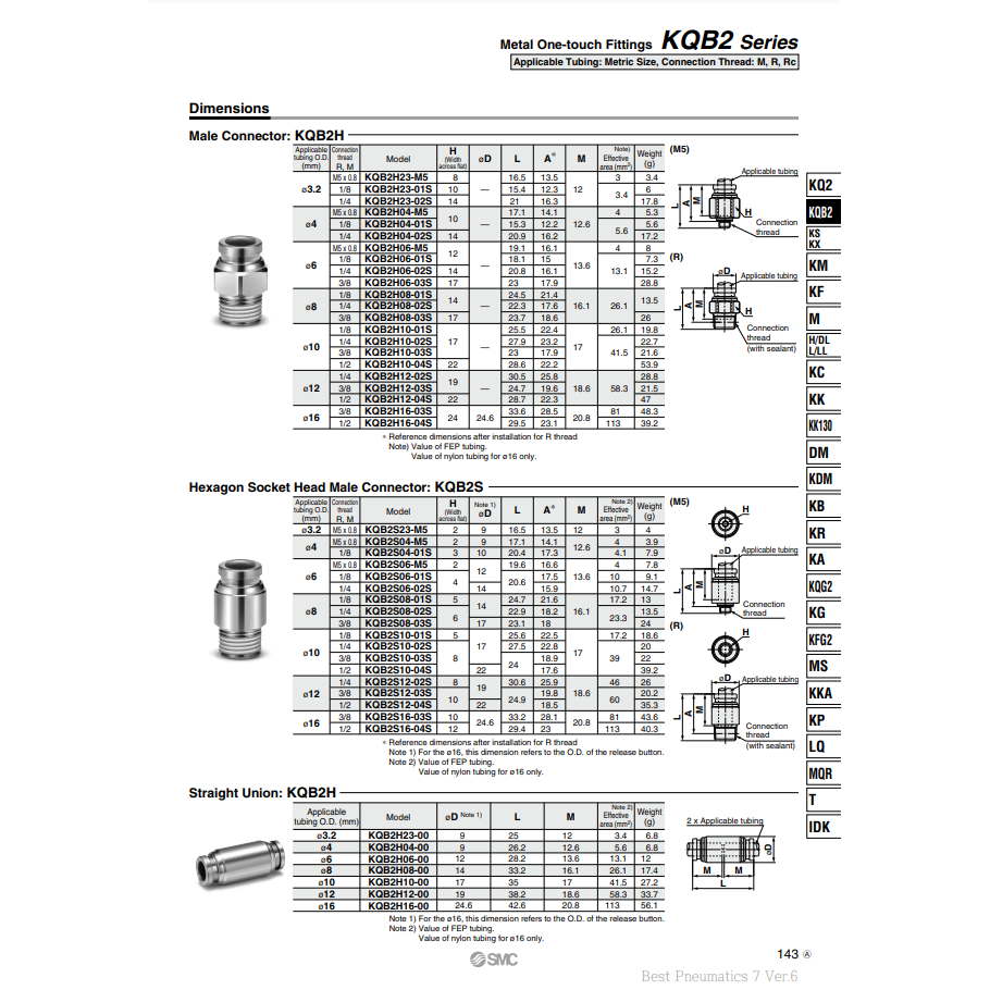 Raccords à une touche en métal SMC Pneumatics KQB2S12-03S pièces pneumatiques