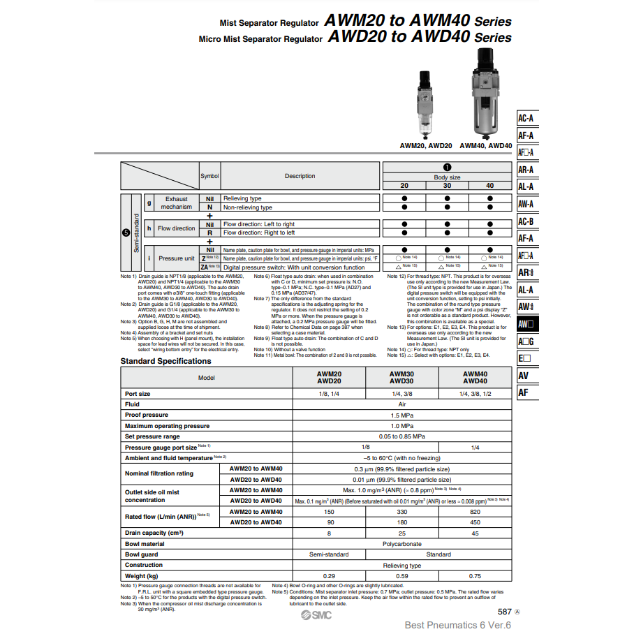 Micro séparateur de brouillard SMC Pneumatics AWD40-04BDG-R régulateur de pression