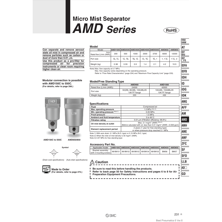 Modèle de séparateur de brouillard Micro SMC Pneumatics AMD350C-03B-T