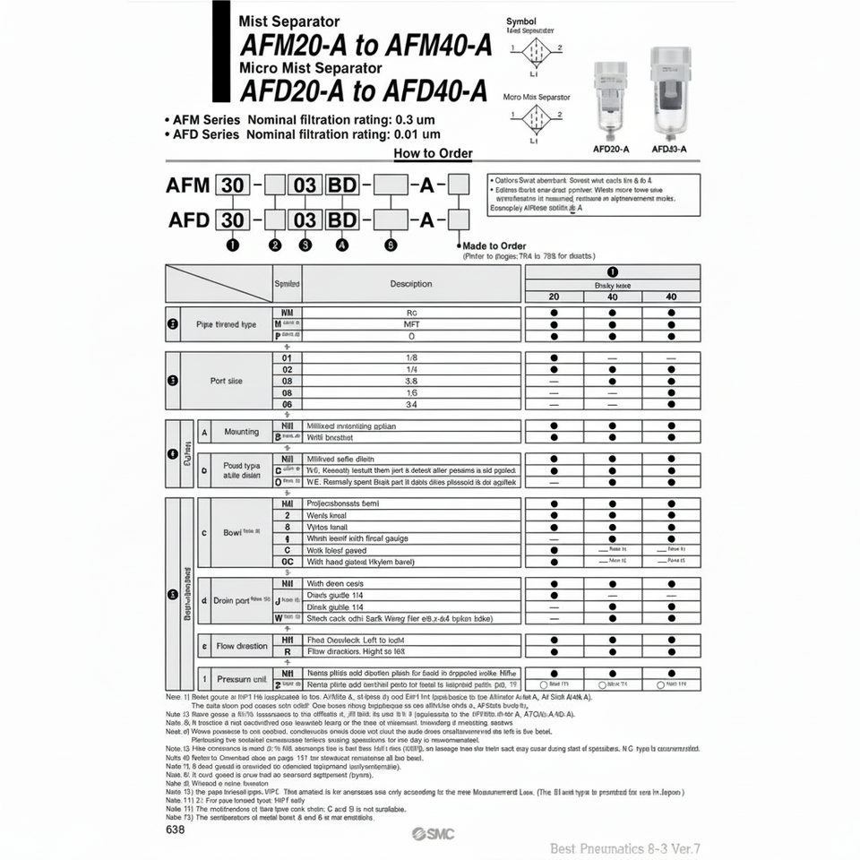 Modèle de séparateur de brouillard pneumatique SMC AFM20-01B-R-A pièces pneumatiques de haute qualité