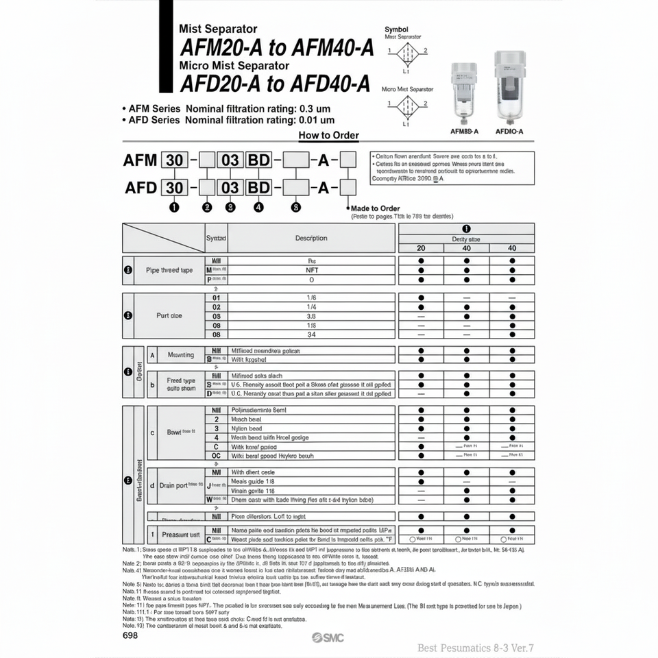 Modèle de séparateur de brouillard pneumatique SMC AFM30-03B-2-A pièces pneumatiques