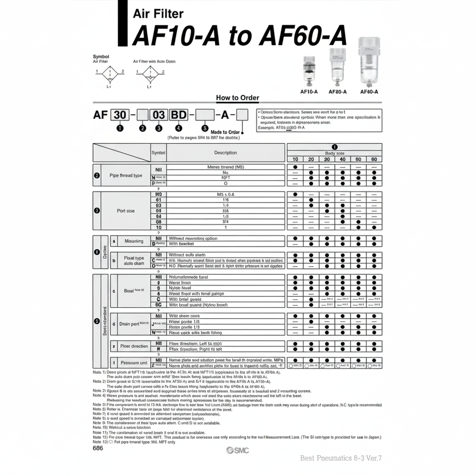 Filtre à air AF30-03B-A de type modulaire SMC Pneumatics