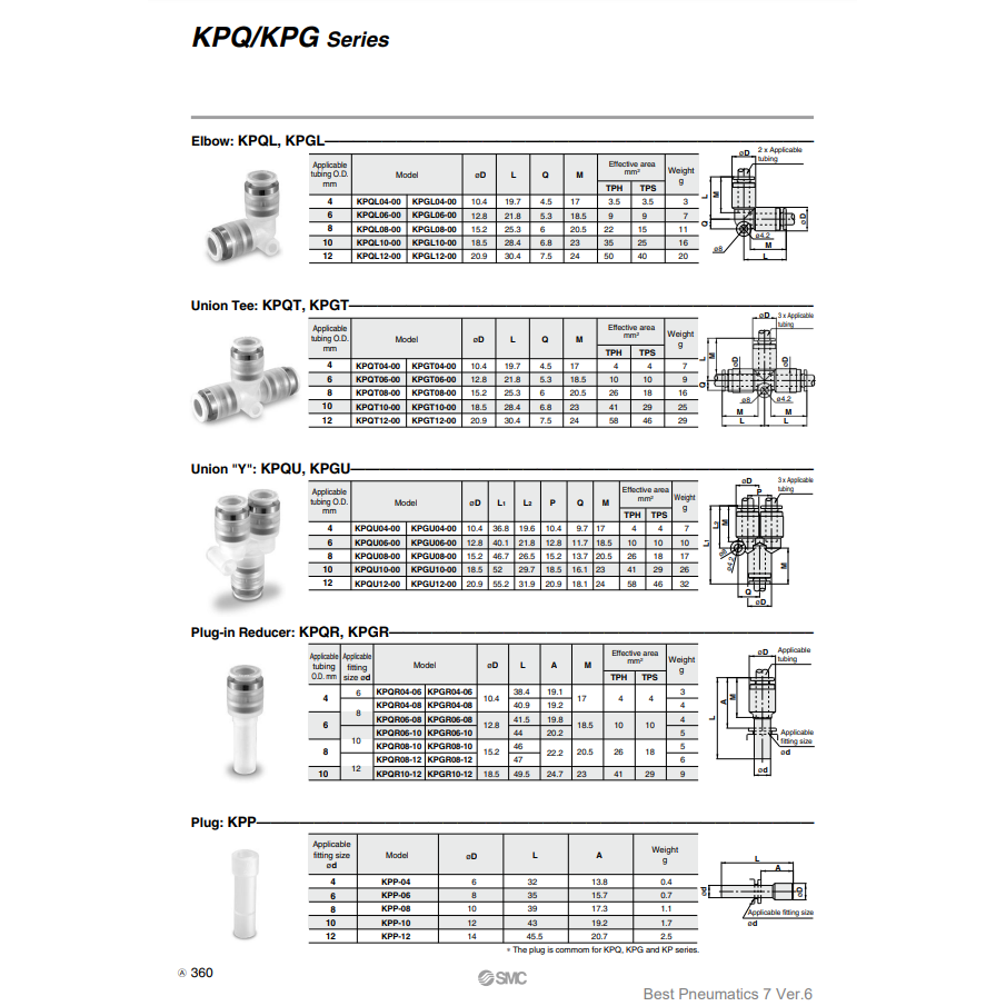 SMC Pneumatics Raccords propres à une touche KPQR08-12 pièces pneumatiques