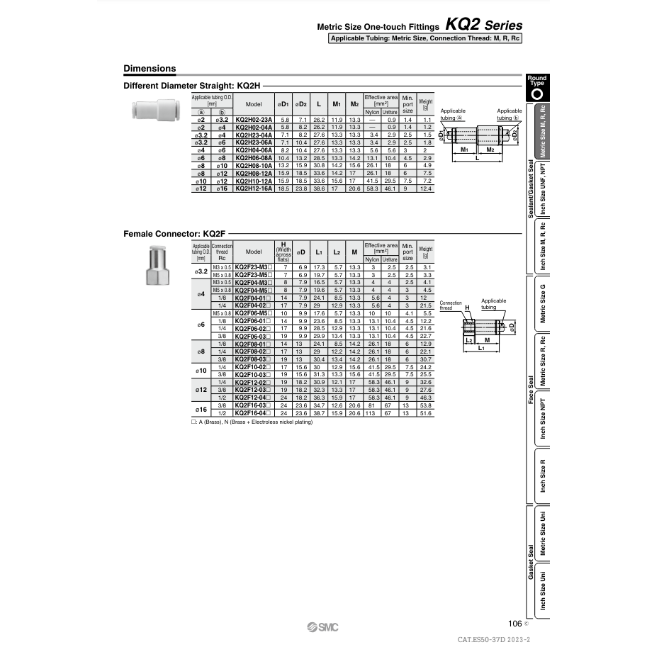 Raccord instantané SMC Pneumatics KQ2F06-M5N pièces pneumatiques