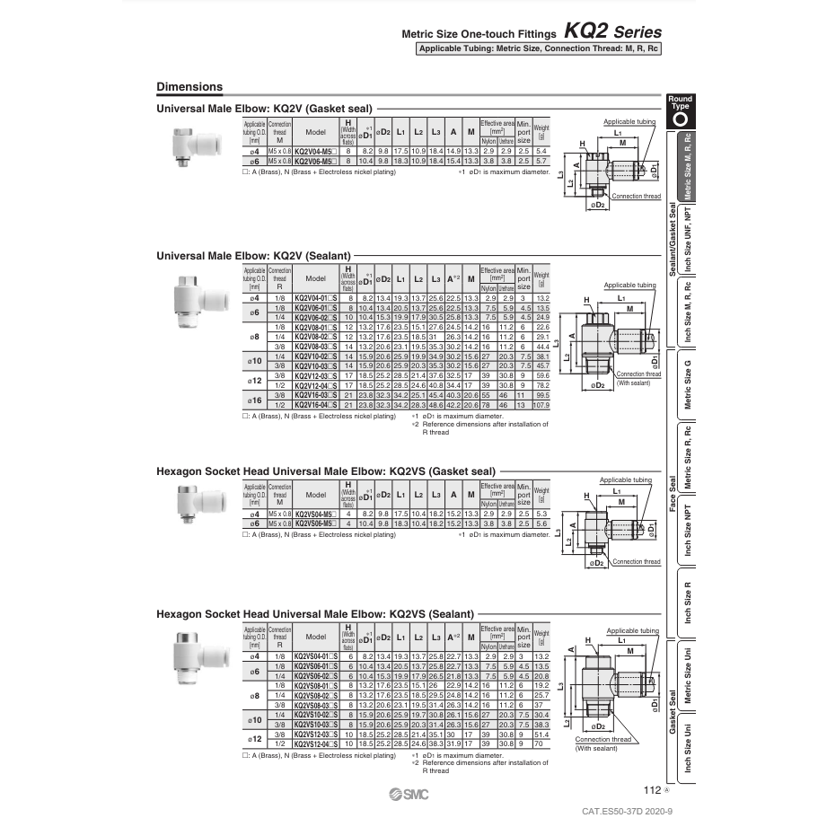 SMC Pneumatics Raccord à une touche KQ2V12-03NS pièces pneumatiques
